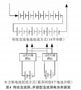 從圖1我們可以看出:蓄電池組必須由18~20節蓄電池組成,控母和合母的輸出電壓不一樣,控制模塊的電壓通過降壓回路降為220 V輸入到控母,給控制回路供電,充電模塊輸出的電壓為250 V左右,一是,給電池進行充電;二是,直接輸入到合母,給合母回路供電。所以,控母和合母是不可互用的,用戶在使用時,必須注意分清負載該接入控母還是合母,具備一定的不安全性。電池采用串聯的方式,因此,當某一個電池出現問題的時候,整個供電系統能量減弱或者無法提供能量,同時,采用串聯的方式不能實現對單個電池進行活化的功能,無法最大程度提高電池的壽命。所以,傳統直流屏隨著電力系統的發展,無論是從成本控制,還是節能環保概念上,都已慢慢體現出它的弊端,必須有一種新型的產品來更好的取代它。