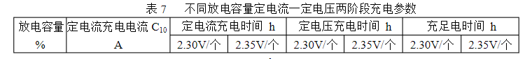 表7不同放電容量定電流一定電壓兩階段充電參數(shù)