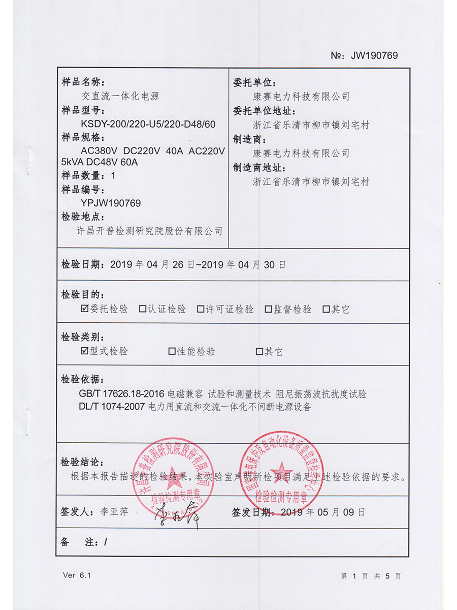 直流屏證書