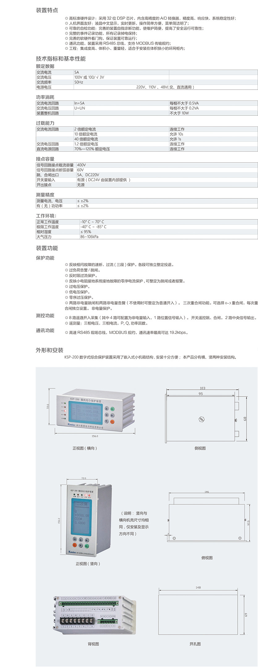 KSP-200 數(shù)字式綜合保護(hù)裝置是我公司為適應(yīng)我國電氣成套事業(yè)發(fā) 展的需要,積累多年電力自動化產(chǎn)品開發(fā)經(jīng)驗(yàn),運(yùn)用新技術(shù)、新工 藝而推出的一款經(jīng)濟(jì)性綜合保護(hù)裝置。裝置結(jié)構(gòu)設(shè)計緊湊、體積小巧, 交直流電源通用,可滿足 10KV 及以下電壓等級進(jìn)出線、廠用變等保 護(hù)測控功能。裝置適宜于安裝在體積狹小的環(huán)網(wǎng)柜內(nèi),構(gòu)成智能化 環(huán)網(wǎng)柜。